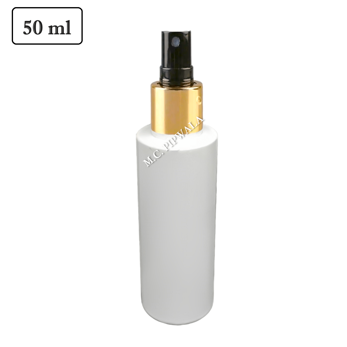 50 ml Milky White Cylinder Bottle-Black Golden Sleeve spray pump