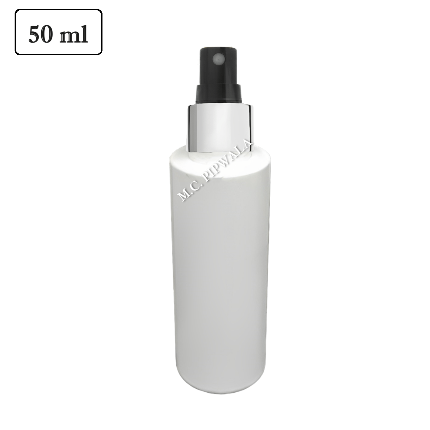 50 ml Milky White Cylinder Bottle-Black Silver Sleeve spray pump